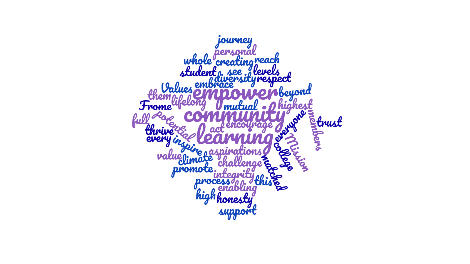 To inspire, challenge and empower every student on their personal learning journey, enabling them to thrive and reach their full potential in our college and beyond.
